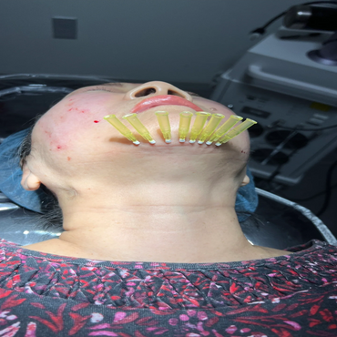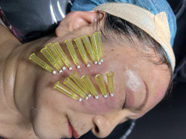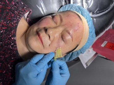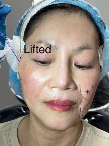 A non-surgical facelift where facial skin is lifted and tightened using Polydioxanone (PDO) cog threads. These threads are anchored and inserted into different layers of the skin using needles, instantly lifting and tightening sagging skin.
